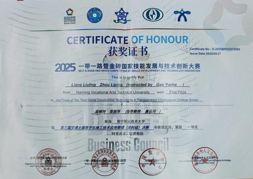 2025年9月25日,“2025一带一路暨金砖国家技能发展与技术创新大赛—第三届交通土建数字化施工技术应用竞赛”全国总决赛在哈尔滨铁道工程职业技术学院举办。来自全国 30个省级行政区 141 所院校的 253 支学生队伍与 28 支教师队伍参赛,蒙古国、孟加拉人民共和国及加纳共和国等国家的留学生也组队参与其中。