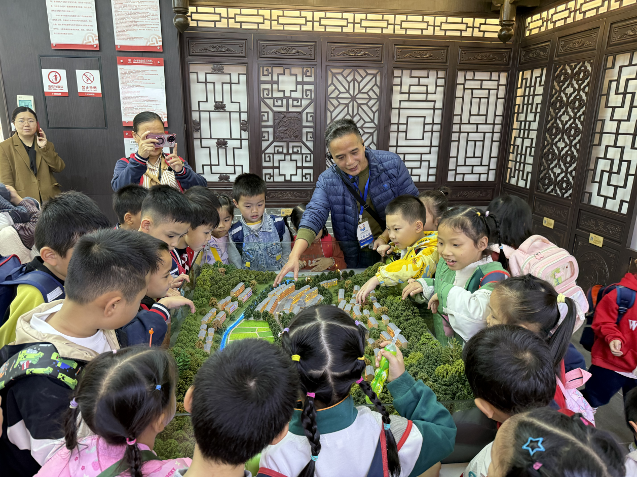 在民族建筑博物馆,学生们仿佛穿越时空隧道,在学院专业教师钟吉华和志愿者的生动讲解下,近距离观察了广西干栏式民居、风雨桥、鼓楼等特色建筑的精致模型与构件。通过“智慧之眼”,孩子们不仅认识了榫卯、斗拱等古老而神奇的建筑结构,更理解了其中蕴含的适应自然、和谐共生的生态智慧。面对栩栩如生的展示,孩子们惊叹连连,纷纷提问,对家乡的传统建筑文化产生了浓厚的兴趣和自豪感。