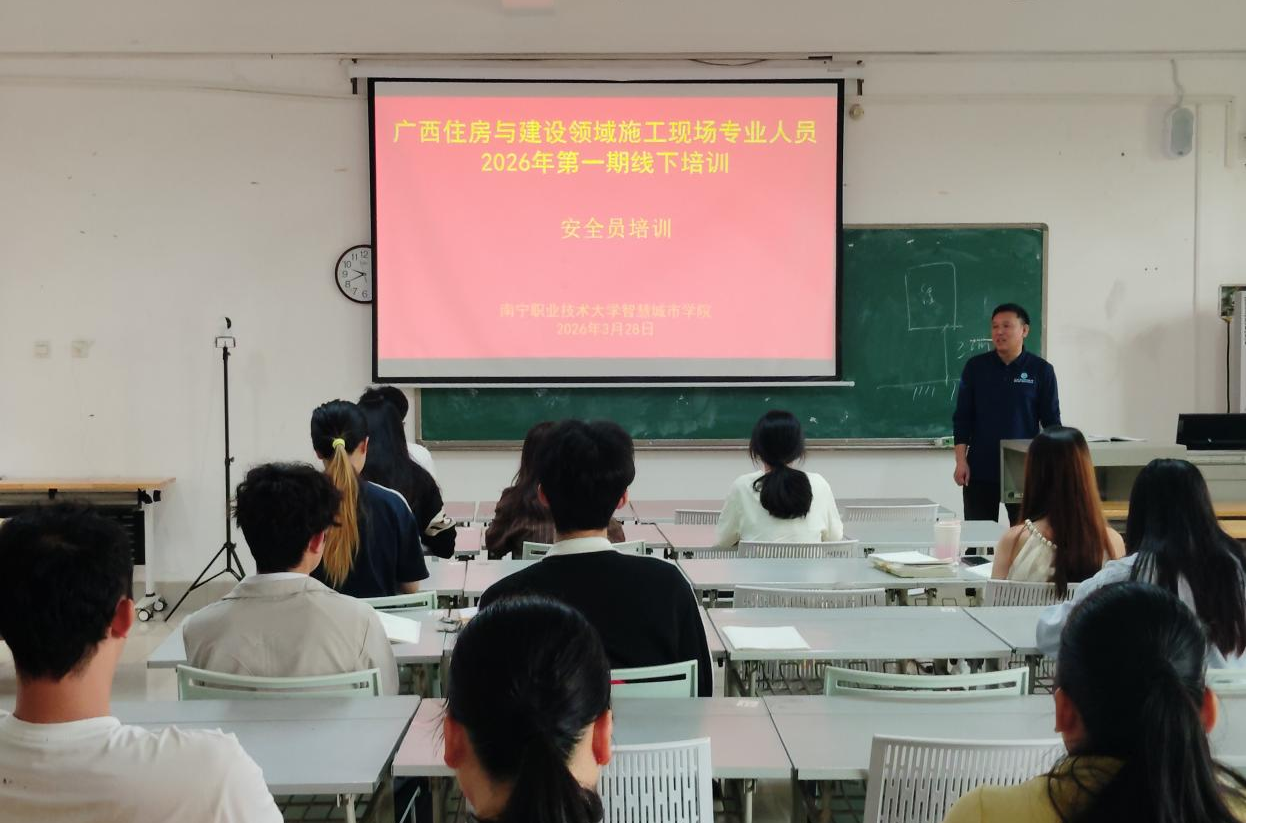 3 月 28 日,智慧城市学院科研与社会服务中心在我校第三教学楼,顺利举办 2026 年首期住房和城乡建设领域施工现场专业人员培训。