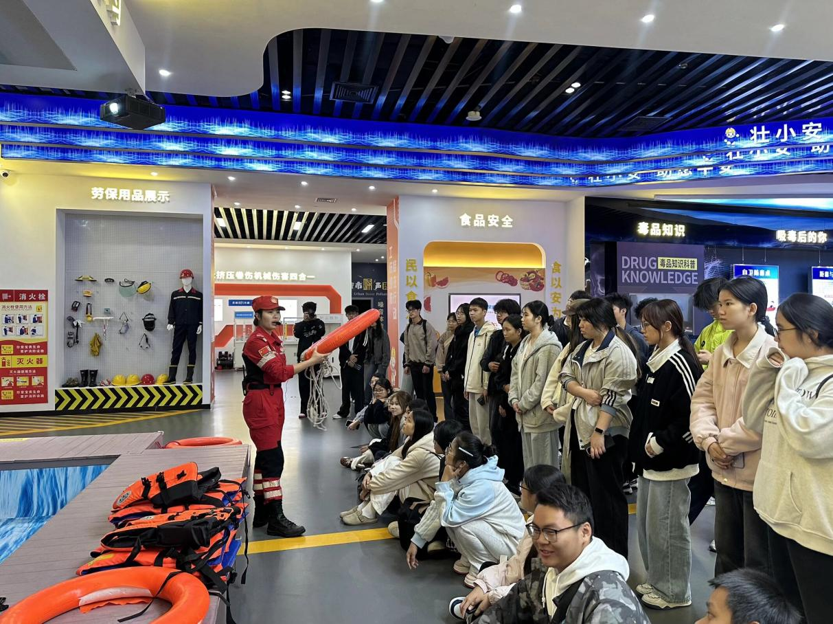 为深入贯彻“大安全大应急”建设要求,强化学生应急处置实践技能,12月6日,智慧城市学院组织2025级青马班学员及物业专业教师、学生共180多人,赴广西体育中心南宁市“壮小安应急安全科教中心”,开展“学应急知识 筑安全堡垒”沉浸式研学实践活动,让同学们在实操体验中筑牢安全防线。
