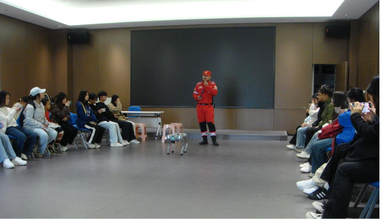 教练员利用机器狗给同学们宣讲安全知识(陈漫/摄)