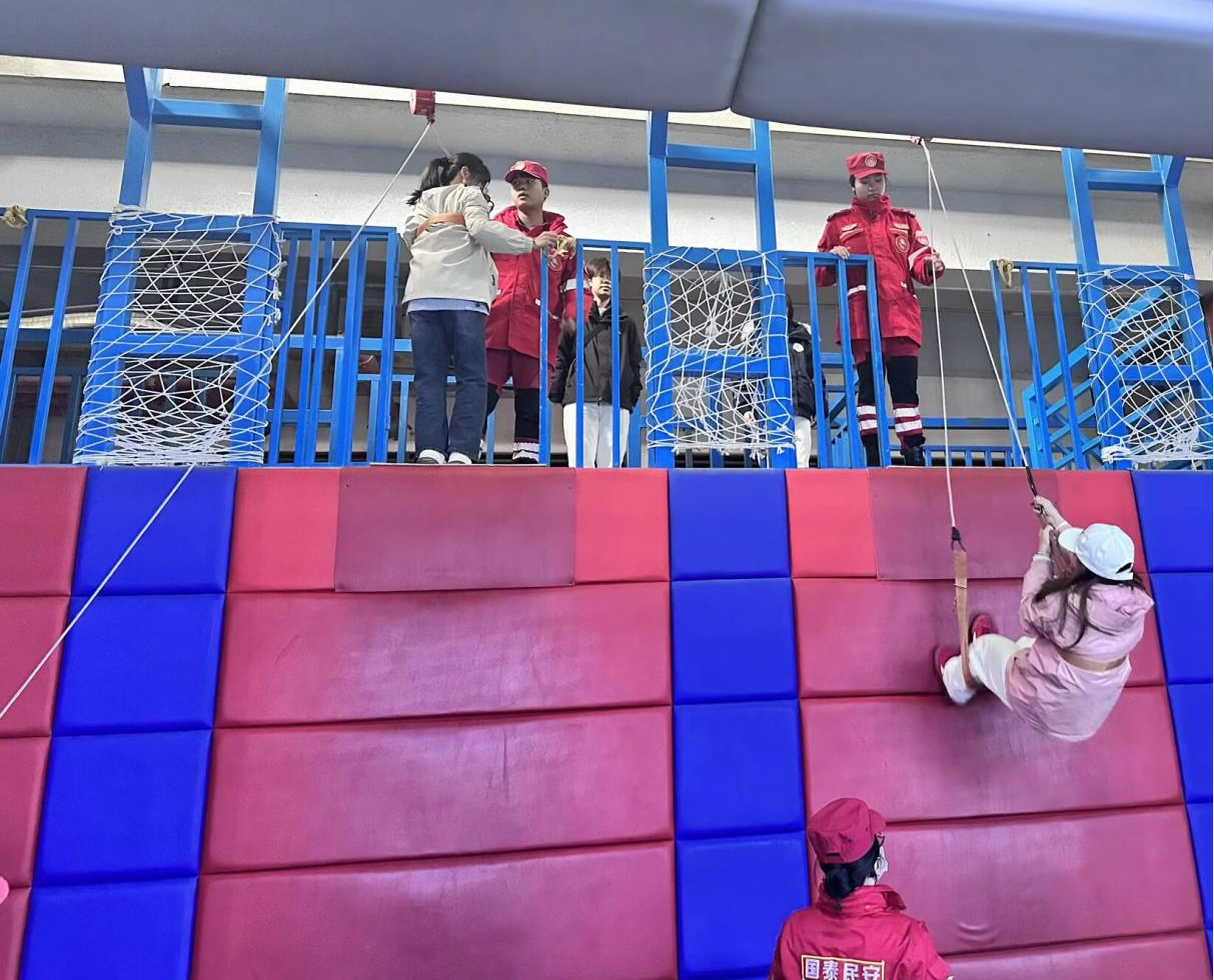 在应急救护演练区,专业教官手把手传授应急绳结打法,现场示范气道异物梗阻急救法、心肺复苏操作流程,学员们认真听讲、反复实操演练。“按压深度要达到 5-6 厘米,频率保持每分钟100-120次”,在心肺复苏实训区,学员们围着模拟人相互纠正动作,力求掌握标准流程。场景模拟体验区让大家身临其境,地铁逃生的紧张有序、火灾现场的浓烟避险、地震小屋的剧烈摇晃、台风模拟的强劲风力,让学员们在真实感十足的环境中学会快速避险、有序撤离,切实体会到“熟练掌握应急技能”是应对突发灾害的关键。高空缓降、灭火器使用等实操演练,则让大家明白“平时多练习,险时少危险”的道理。高科技赋能下的演练项目更让学员们感受到应急知识普及的重要性。VR飞船、5D 影院、轨道影院等设备,将交通安全、生产安全、国防安全等知识转化为沉浸式体验,让学员们在震撼感受中意识到,安全风险无处不在,应急能力缺一不可。