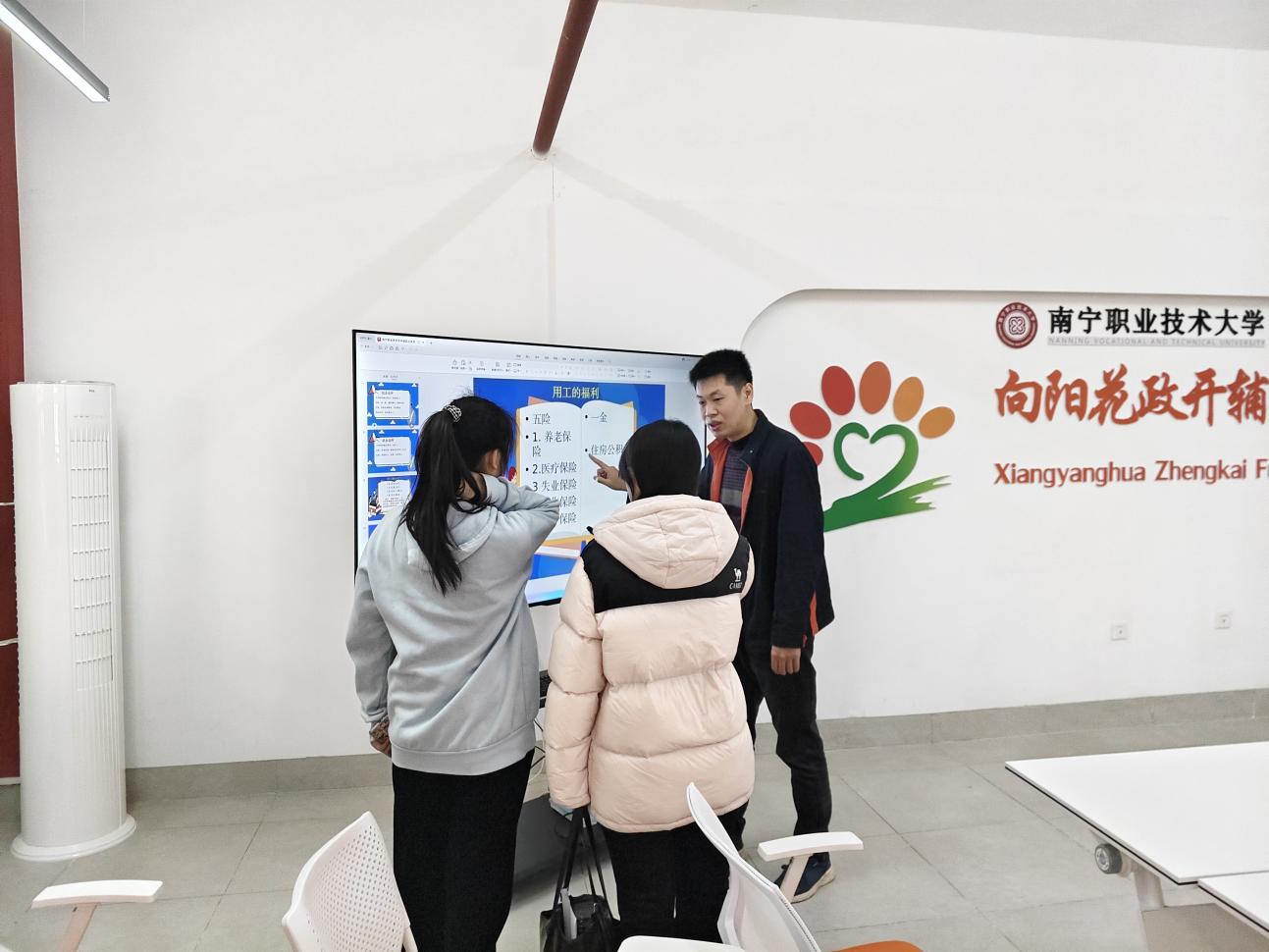 活动过程中,顾之骏围绕建筑工程大类主流用工形式和用工合同签订的变化进行详细介绍。听完介绍后,学生与老师进行交流讨论,针对学生提出的毕业后职业选择及入职后所享有的福利等问题,顾之骏进行耐心深入地解答,使得学生更加了解行业发展情况,明确个人发展方向。