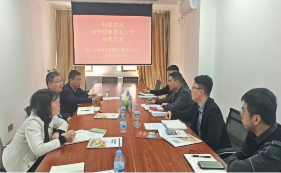 为深化产教融合、拓宽学生就业渠道,2026 年 3 月 13 日,智慧城市学院党委书记陈纲、党委副书记吴代生,学生管理中心主任黄吉、就业干事顾之骏 4 人组成走访队伍,赴南宁市盛都投资集团有限公司开展访企拓岗专项行动。公司董事、副总经理罗孙文等热情接待了学院一行。