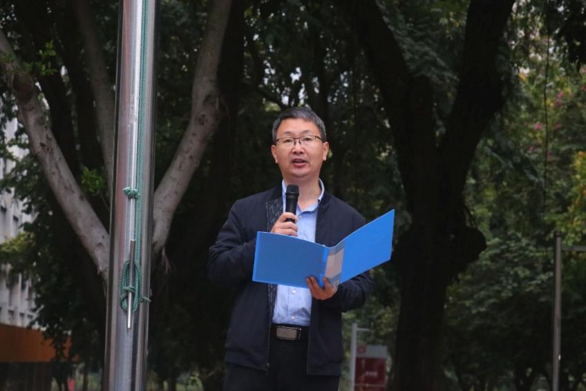 2026年3月23日清晨,智慧城市学院在学校东盟广场举行2026年春季学期第一次升旗仪式,本次升旗仪式由邱海兰主持,学院党委书记陈纲、党委副书记吴代生、全体专兼职辅导员及24,25级全体同学参加。