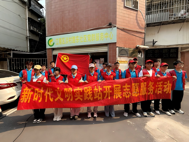 2026年4月10日下午,南宁市江南区淡村路东社区涌动着一股清新的“青春暖流”。我院2024级建筑工程1班、2班团支部的17名青年志愿者,身着红马甲,手持清洁工具,在社区公共区域开展了以“青春助洁社区,践行雷锋精神”为主题的环境卫生大扫除志愿服务活动。经过一个小时的集中整治,社区面貌焕然一新,一抹抹“志愿红”成为春日里最亮丽的风景线。