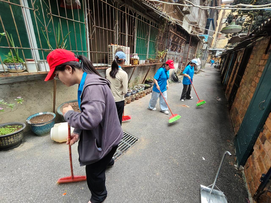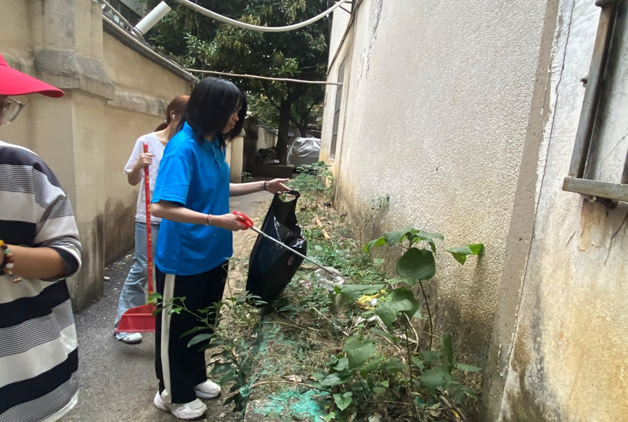 本次活动围绕环境整治、安全排查等内容展开。志愿者们分工协作,手持扫帚、夹子、垃圾袋等工具,对社区主干道、绿化带、楼道、公共广场等区域进行全面清扫,重点清理落叶、烟头、纸屑、塑料袋等垃圾杂物,不留卫生死角。志愿者们在清扫过程中注重细节,将散落在花坛边缘、墙角缝隙的细小垃圾逐一清理干净,并对乱停乱放的非机动车进行规范摆放,确保社区道路畅通有序。
